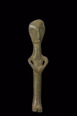 Las figuras de los dignatarios aparecen ataviadas con elaborados tocados de plumas. A esta pieza se suma un Exvoto ibérico --siglos IV -III a.C.--, realizada en bronce mediante la técnica de cera perdida, que representa un personaje masculino de anatomía esquemática con brazos en jarra, gran cabeza y detalles en rostro y pechos elaborados mediante pequeños círculos incisos.