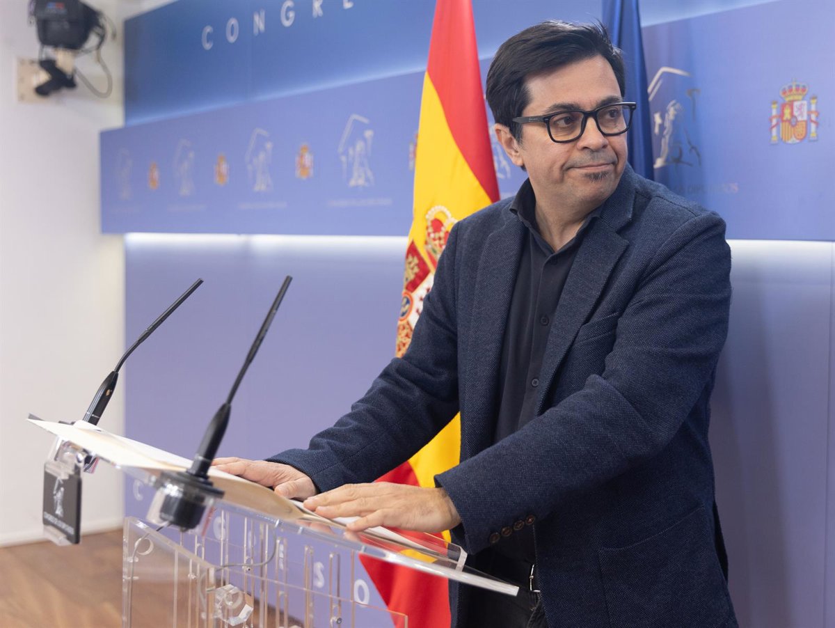El secretario primero de la Mesa del Congreso, Gerardo Pisarello, interviene durante una rueda de prensa para valorar la comparecencia de Armengol sobre el caso Koldo, en el Congreso de los Diputados, a 5 de marzo de 2024, en Madrid (España). - Eduardo Parra - Europa Press