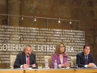 La vicepresidenta estaba acompañada en rueda de prensa por el consejero de Economía y Hacienda, Antonio Fernández, y de Administración Pública, Pedro Nevado-Batalla, quienes han detallado el contenido de los proyectos de ley que se incluyen en el plan de ajuste extremeño para cumplir con el déficit.