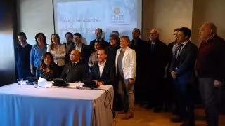 El coordinador general de la Plataforma Cívica Región de Murcia y expresidente del Gobierno Regional, Alberto Garre, ha presentado este martes en Murcia a los responsables de los 12 grupos de trabajo con los que la Plataforma quiere tomar el pulso a la Región de Murcia.