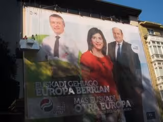 El PNV calienta ya motores de cara a las próximas elecciones europeas del 25 de mayo y ha vestido la fachada de Sabin Etxea de Bilbao con un cartel de grandes dimensiones con el lema: 'Euskadi gehiago Europa Berrian. Más Euskadi, otra Europa'