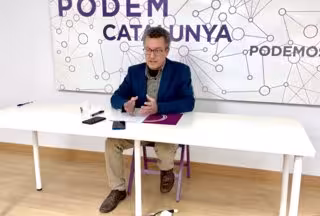 El portavoz de Podem Catalunya, Andrés Medrano, en rueda de prensa - PODEM