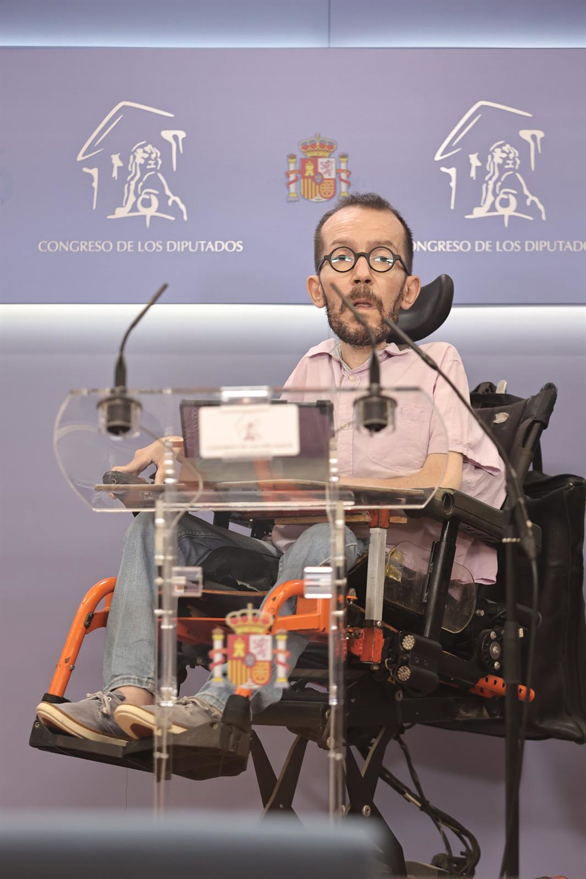 El portavoz de Unidas Podemos en el Congreso, Pablo Echenique, ofrece una rueda de prensa en el Congreso de los Diputados, Madrid, (España). - EUROPA PRESS/E. Parra. POOL - Europa Press