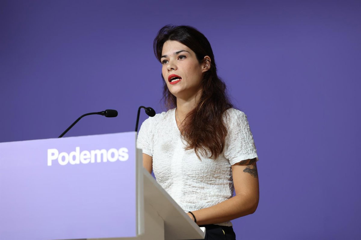 La portavoz nacional de Podemos, Isa Serra, ofrece una rueda de prensa, en la sede del partido, a 11 de septiembre de 2023, en Madrid (España). - Isabel Infantes - Europa Press