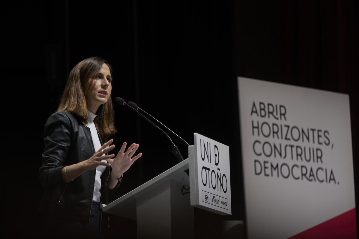 Archivo - La ministra de Derechos Sociales y Agenda 2030, Ione Belarra, en el mitin final de la Universidad de Otoño, organizada por Podemos, en Rivas-Vaciamadrid, a 10 de octubre de 2021, en Madrid (España). - Jesús Hellín - Europa Press - Archivo