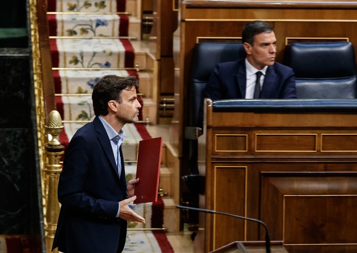 El diputado de Unidas Podemos, Jaume Asens (i), pasa por delante del presidente del Gobierno, Pedro Sánchez (d) - La Vanguardia/POOL - Europa Press
