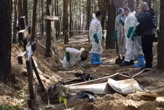 Archivo - Exhumación en una fosa común hallada en los alrededores de la localidad ucraniana de Izium tras la retirada de las tropas rusas - Danylo Antoniuk / Zuma Press / ContactoPhoto