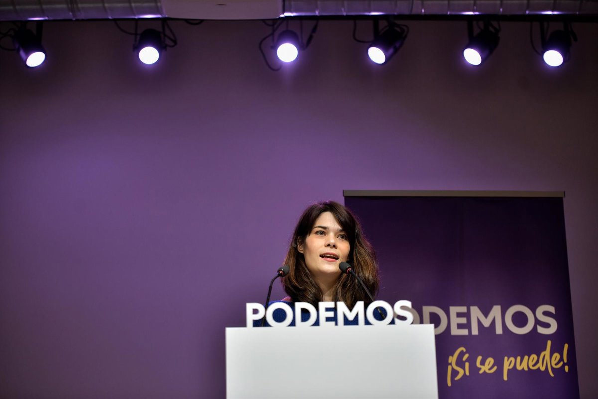 La portavoz de Podemos, Isa Serra, ofrece una rueda de prensa en la sede central de Podemos. - DANI GAGO/PODEMOS