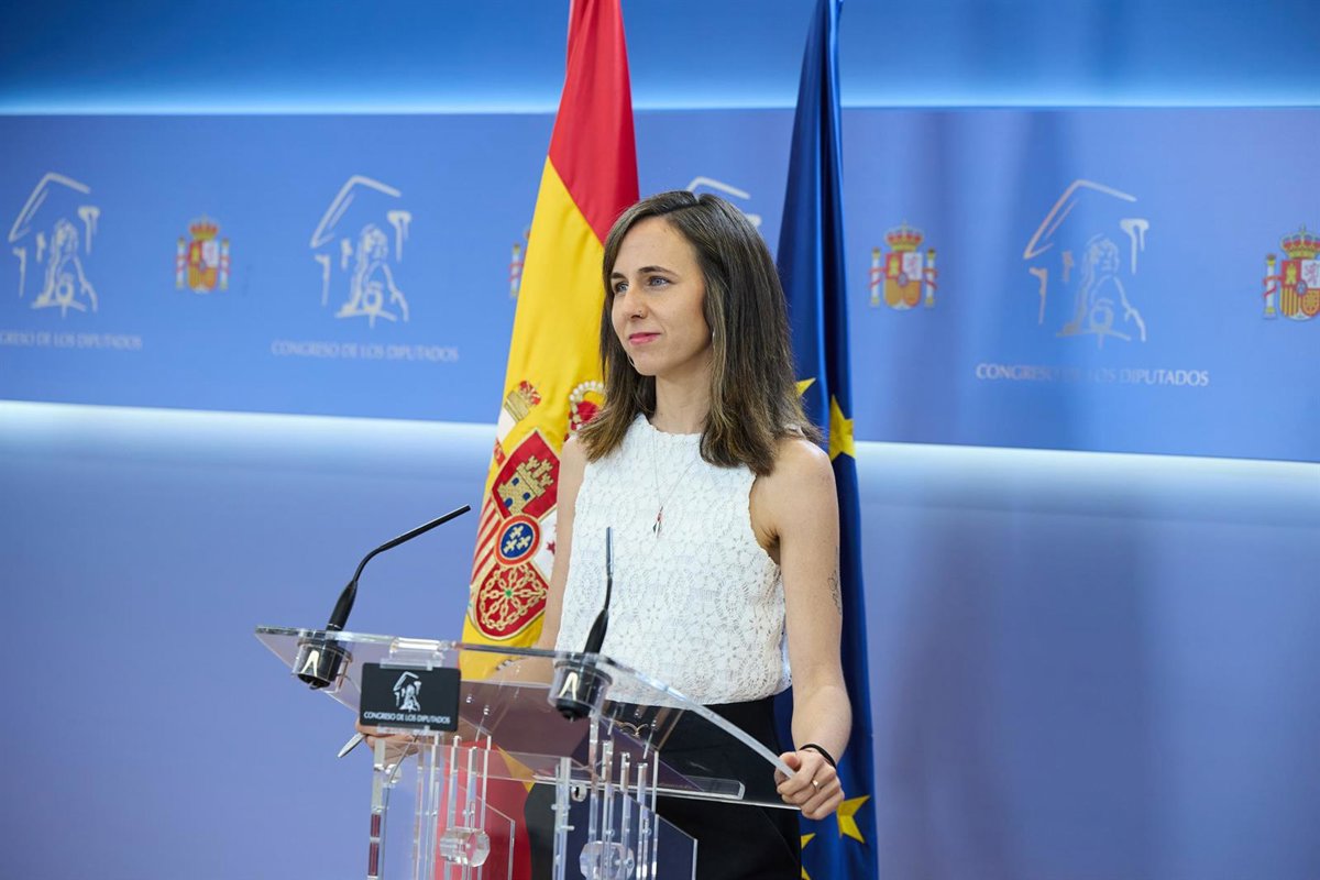 La portavoz de Podemos en el Congreso, Ione Belarra, durante una rueda de prensa anterior a la Junta de Portavoces, en el Congreso de los Diputados, a 24 de junio de 2025, en Madrid (España). - Jesús Hellín - Europa Press