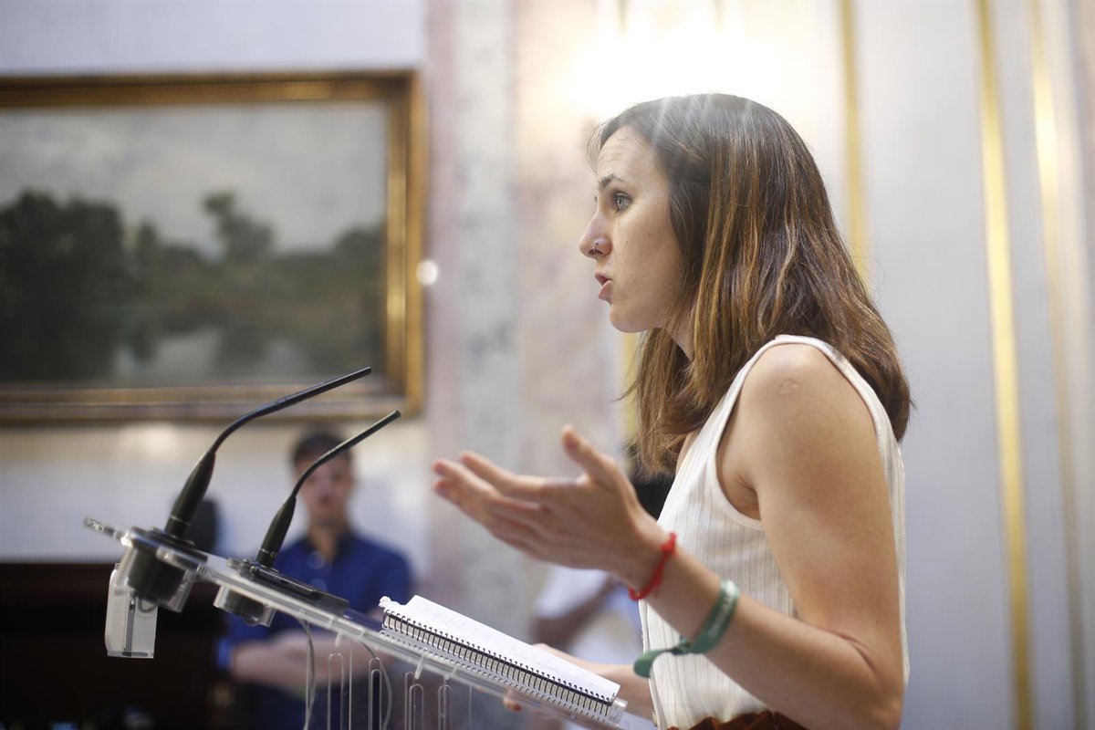 La portavoz adjunta de Unidas Podemos, Ione Belarra, en rueda de prensa tras la segunda votación para la investidura del candidato socialista a la Presidencia del Gobierno, la cual ha resultado fallida. - Eduardo Parra - Europa Press