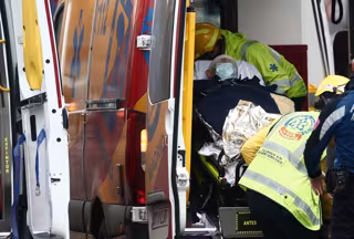Varios trabajadores sanitarios introducen a un herido en una ambulancia tras la explosión en la calle Toledo de Madrid - Eduardo Parra - Europa Press