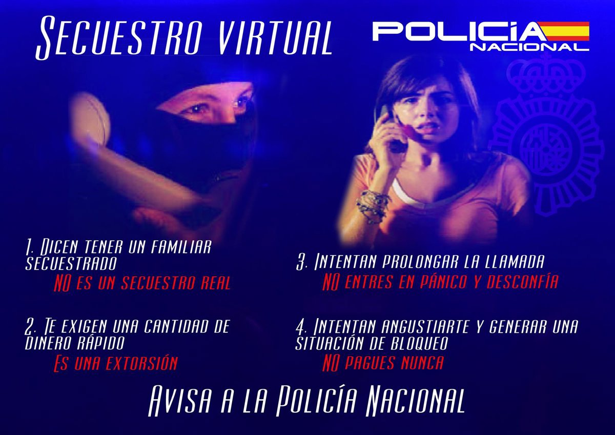 Asimismo, también unas pautas de prevención básicas pueden evitar que los ciudadanos se conviertan en víctimas de este tipo de extorsiones. La primera es desconfiar si le dicen que han secuestrado a un familiar, incluso si se pone otra persona o se escuchan voces de fondo y mantener la calma ante la presión ejercida por el falso secuestrador, que usará violencia verbal de cualquier tipo.