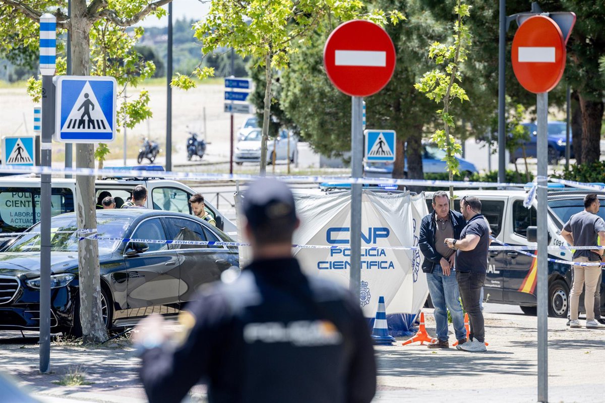 Agentes de la Policía trabajan en el lugar del asesinato de un abogado ucraniano en Pozuelo de Alarcón (Madrid) - Ricardo Rubio - Europa Press
