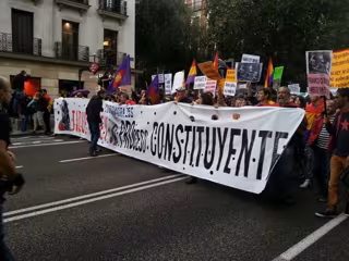 Según estas mismas fuentes, los 65 identificados salían con palos y banderas y con intención de provocar disturbios de un centro ocupado denominado La Traba, ubicado en la calle Belchite, 18 de Madrid.