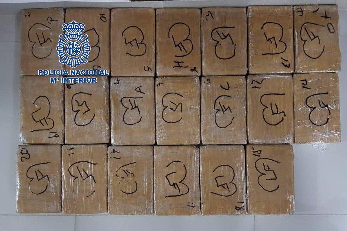 Durante el análisis de los bloques de cocaína, la Policía Nacional ha comprobado que gran parte de ellos están marcados con el logotipo "M", mientras que el resto llevan un logo manuscrito.