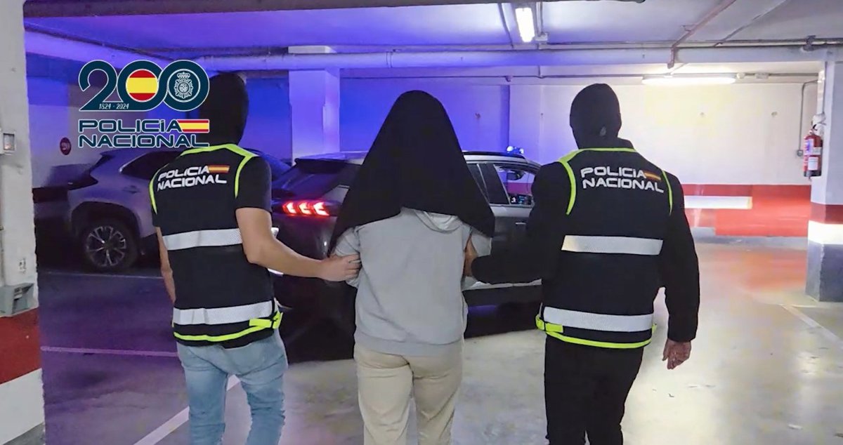 Dos agentes de la Policía Nacional con una persona detenida por su presunta vinculación al terrorismo yihadista. - POLICÍA NACIONAL