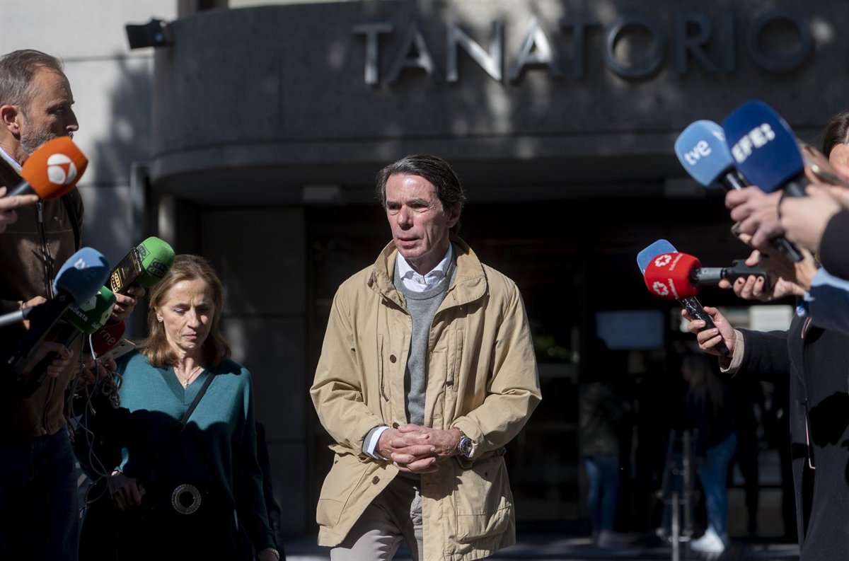 El expresidente del Gobierno de España José María Aznar, sale de la capilla ardiente del exministro Josep Piqué, en el Tanatorio M-30, a 7 de abril de 2023, en Madrid (España). - Alberto Ortega - Europa Press