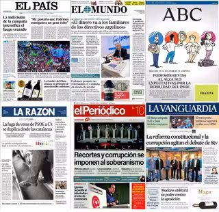 Las primeras ediciones de los principales periódicos llegados a nuestra redacción incluyen, entre otras, las siguientes noticias en sus portadas: