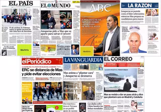 ABC: "Junqueras se da impulso sobre las ruinas de Mas y la CUP. Tras dos meses de calculado silencio, el líder republicano pide paso como alternativa secesionista real frente a "la irresponsibilidad de los antisistema y la intransigencia de CDC"".