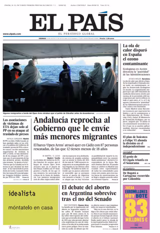 EL PAÍS: "Andalucía reprocha al Gobierno que le envíe más menores migrantes"; "La ola de calor disparó en España el ozono contaminante"; "Las asociaciones de víctimas de ETA dejan solo al PP en su ataque al traslado de presos"; "El debate del aborto en Argentina sobrevive tras el no del Senado".