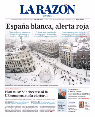 LA RAZÓN: "España blanca, alerta roja"; "Plan 2023: Sánchez usará la UE como coartada electoral"; Trumpismo: el fin del fallido experimento antipolítica".