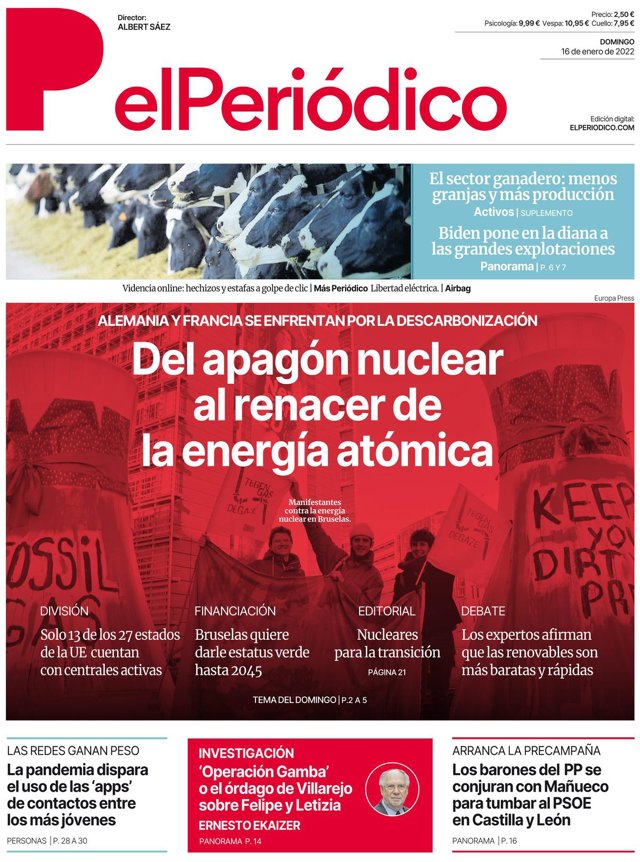 EL PERIÓDICO: "Del apagón nuclear al renacer de la energía atómica"; "La pandemia dispara el uso de las 'apps' de contactos entre los más jóvenes"; "Los barones del PP se conjuran con Mañueco para tumbar al PSOE en Castilla y León".