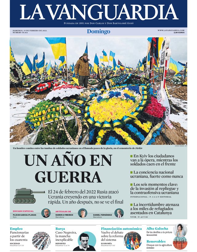 EL CORREO: "Un año de guerra en Ucrania"; "Suena alegre el Carnaval"; "Un colapso de la Seguridad Social desespera a los vizcaínos".