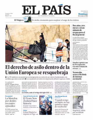 EL PAÍS: "El derecho de asilo dentro de la Unión Europea se resquebraja"; "Dos años, tres meses y ni un minuto de tregua para el fiscal general"; "Sánchez aprieta con los Presupuestos tras una semana de reveses"; "Netanyahu acusa a Hezbolá de intentar asesinarlo".