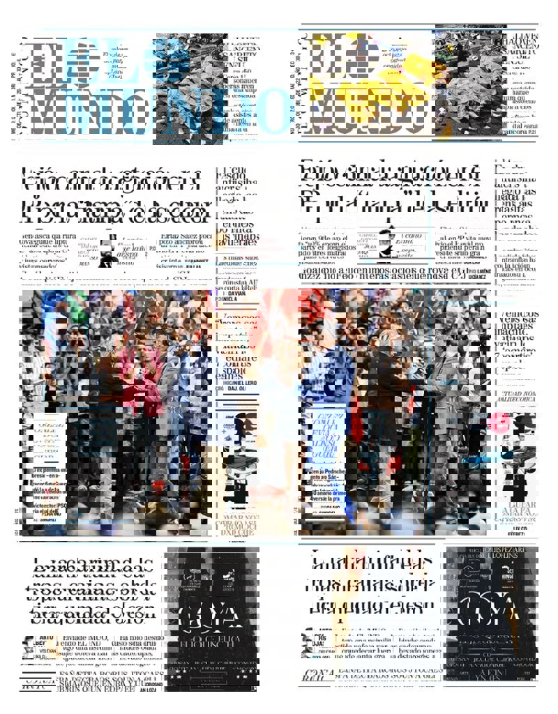 EL MUNDO: "Feijóo calma la agitación en el PP por la "trampa" de la sedición"; "La marcha triunfal sobre las tropas ucranianas sobre la tierra quemada de Jérson"; "El escudo anticrisis ha llegado a las rentas altas pero menos a las vulnerables"; "Halloween sangriento en Seúl".