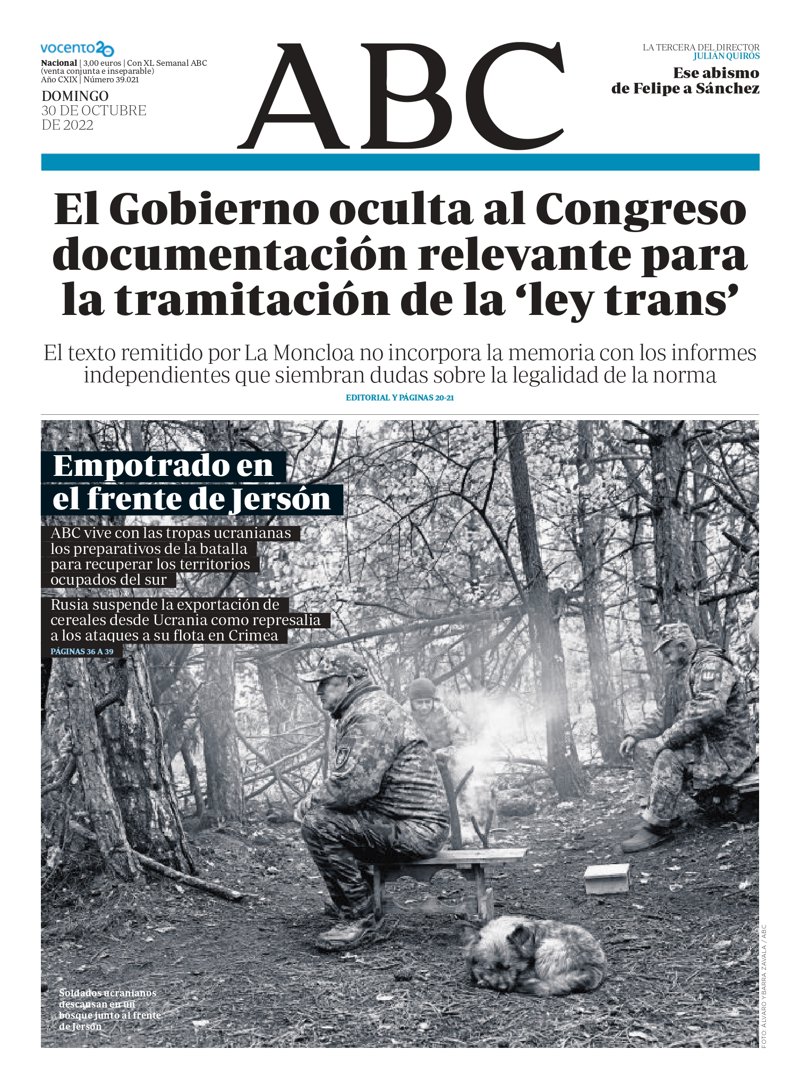 ABC: "El Gobierno oculta al Congreso documentación relevante para la tramitación de la 'ley trans'"; "Empotrado en el frente de Jersón".
