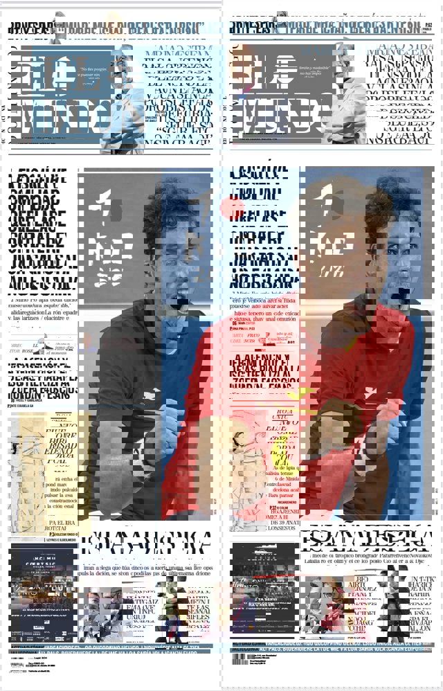 EL MUNDO: "Mariano Esteban tras la suspensión del ensayo de la vacuna española por posibles fallos de seguridad: 'Seguiré, esto no se acaba aquí'"; "La Fiscalía ve complicado querellarse contra el rey Juan Carlos I al año de su salida"; "La fragmentación y el desgaste penalizan a la izquierda en 40 escaños"; "España despega".