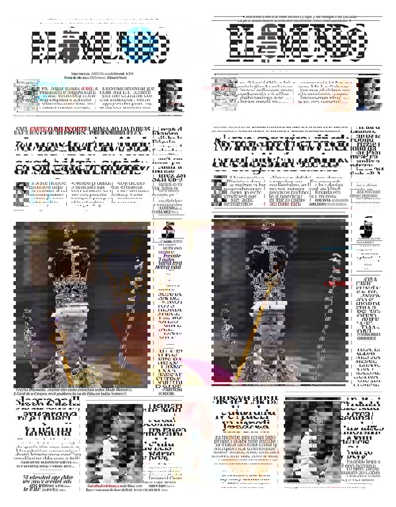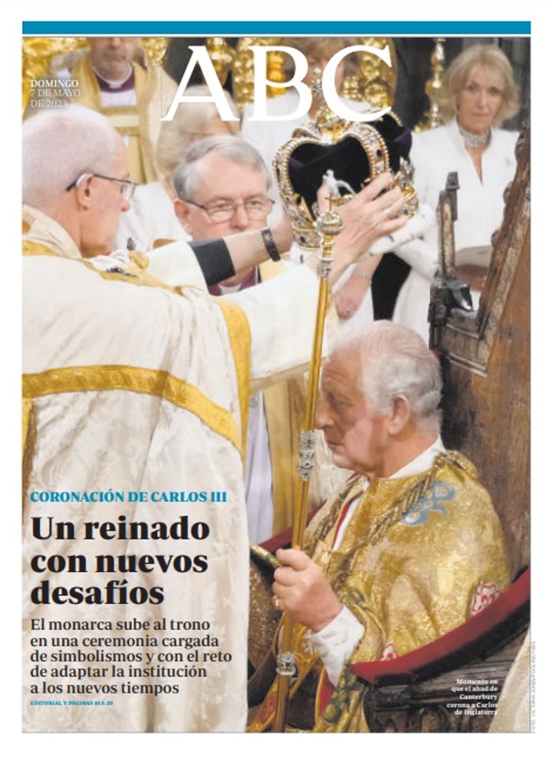 ABC: "Coronación de Carlos III. Un reinado con nuevos desafíos. El monarca sube al trono en una ceremonia cargada de simbolismos y con el reto de adaptar la institución a los nuevos tiempos".