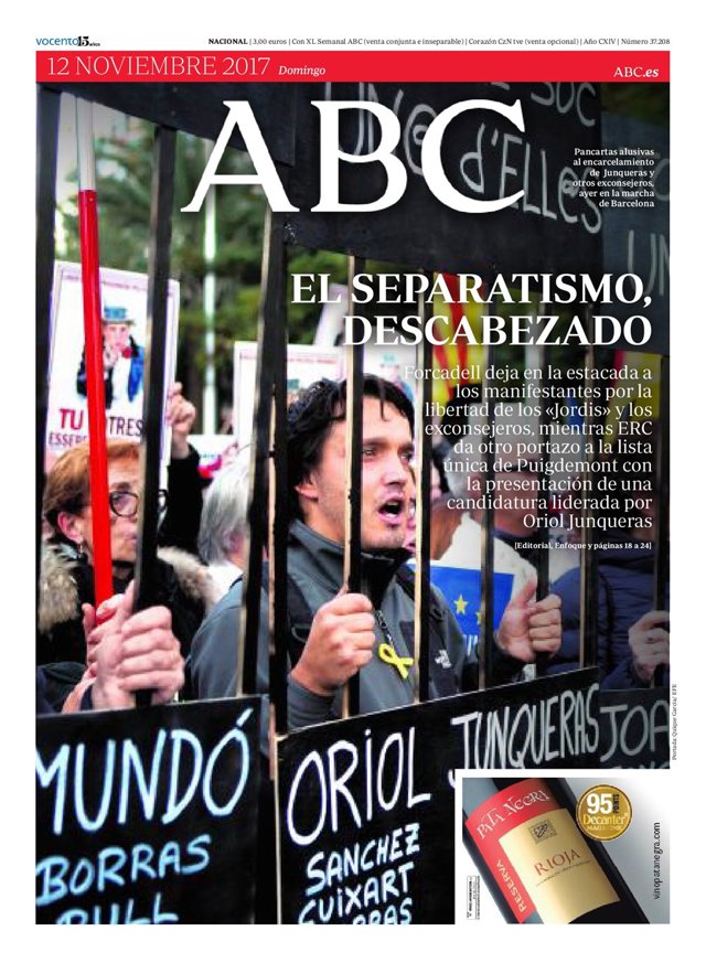 ABC: "El separatismo, descabezado"; "Trump y Putin, de acuerdo en que no hubo 'injerencia rusa" en EE.UU."; "España despide a Chiquito de la Calzada"; "Las rentas de 30.000 a 60.000 euros, las que más aportan a los ingresos por IRPF".