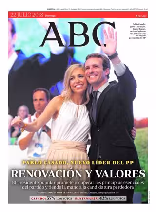 ABC: Pablo Casado, nuevo líder del PP: "Renovación y valores"; "El presidente popular promete recuperar los principios esenciales del partido y tienda la mano a la candidatura perdedora.