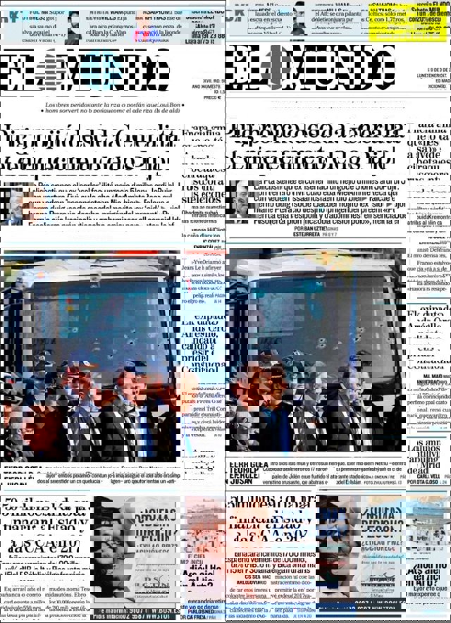 Las primeras ediciones de los principales periódicos llegados a nuestra redacción incluyen, entre otras, las siguientes noticias en sus portadas: