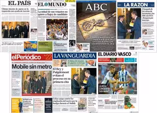 Las primeras ediciones de los principales periódicos llegados a nuestra redacción incluyen, entre otras, las siguientes noticias en sus portadas: