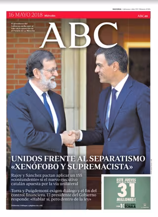 ABC: "Unidos frente al separatismo 'xenófobo y supremacista'"; "EE.UU. se queda solo en su defensa de la represión israelí en Gaza"; "Tom Wolf. El nuevo periodismo pierde a su dandi exquisito"; "La UE garantiza a Irán que respetará el acuerdo nuclear si Teherán cumple su parte"; "Tres clanes de narcos están implicados en los últimos sucesos de Algeciras"; "El expresidente del Popular consideró viable la entidad hasta un día antes de su resolución".