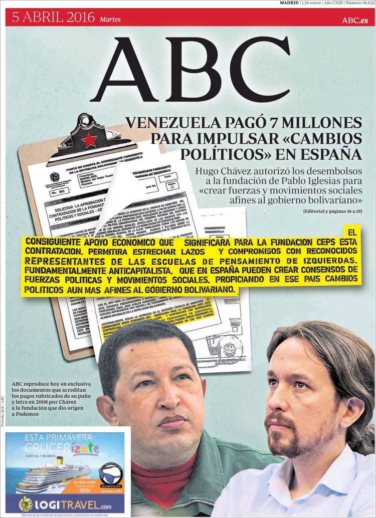 ABC: "Venezuela pagó 7 millones para impulsar "cambios políticos" en España".