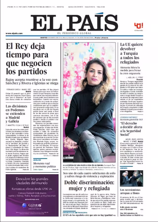 EL PAÍS: "El Rey deja tiempo para que negocien; "Doble discriminación: mujer y refugiada. Son uno de cada cuatro solicitantes de asilo y sufren riesgo de violencia y explotación"; "Las divisiones en Podemos se extienden a Madrid y Galicia"; "La UE quiere devolver a Turquía a todos los refugiados"; "Cándido Méndez, secretario general de UGT: "El derecho a decidir afecta a la Seguridad Social"".