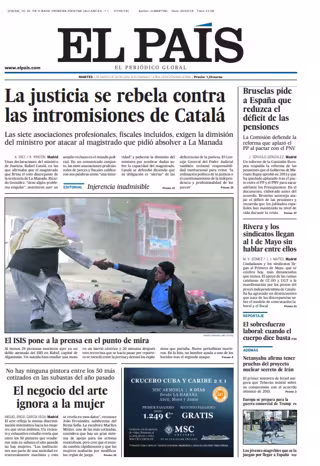 EL PAÍS: "La justicia se rebela contra las intromisiones de Catalá"; "Bruselas pide a España que reduzca el déficit de las pensiones"; "Rivera y los sindicatos llegan al 1 de Mayo sin hablar entre ellos"; "El negocio del arte ignora a la mujer".