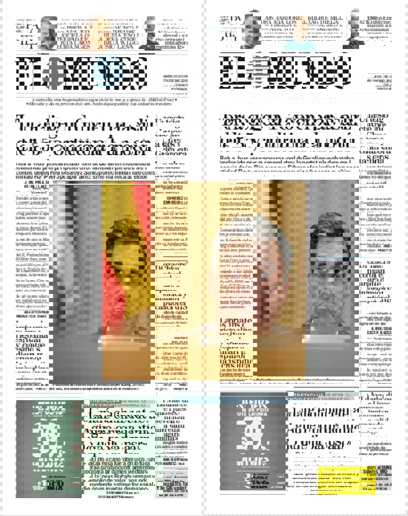 EL MUNDO: "Torra elige un Govern para salir del 155 y condicionar la moción"; Bárcenas: "Llamé delincuente a Aguirre porque intuía lo que iba a pasar". "Una testigo clave pone a Chaves y Griñán contra las cuerdas"; "Diez 'hackers' controlan el aparato de información y captación del IS".