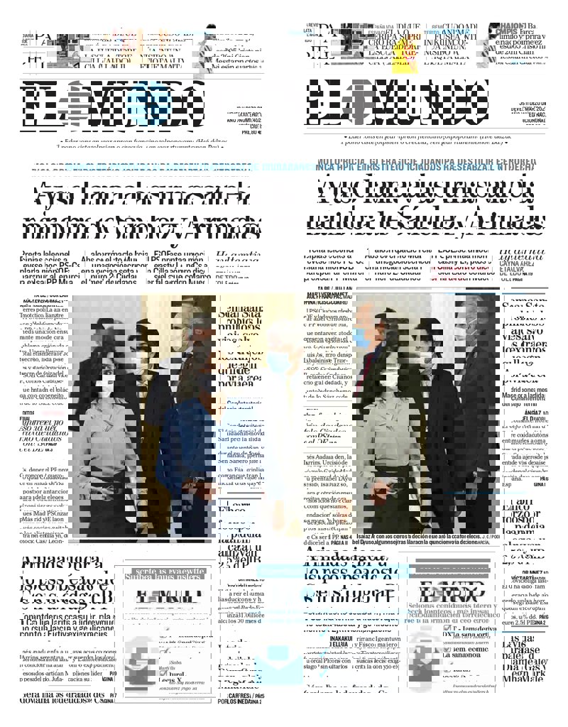 EL PAÍS: "Ciudadanos rompe el tablero. El fin de la alianza de PP y Cs en Murcia desbarata el mapa político de toda España. Relato de las horas en que el PP decidió pulsar el "botón nuclear". Ayuso: una gestión de polémicas pero sin presupuesto ni casi leyes"; "Madrid se niega a cerrar como hará el resto de la Península"; "La hija de un