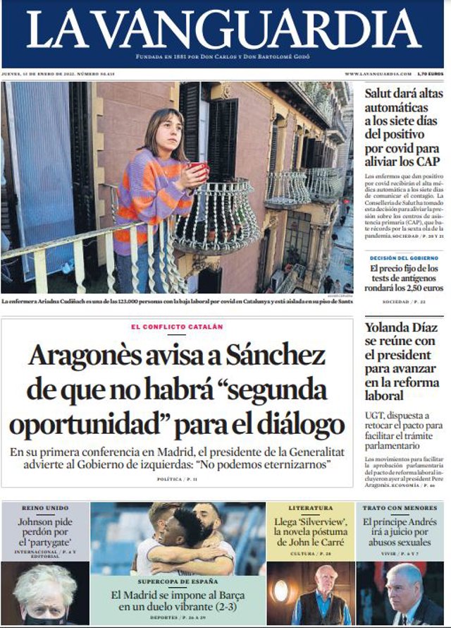 oportunidad" para el diálogo'"; "Salut dará altas automáticas a los siete días del positivo por covid para aliviar los CAP"; "Yolanda Díaz se reúne con el president para avanzar en la reforma laboral".