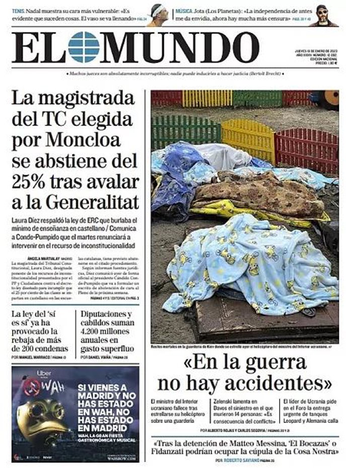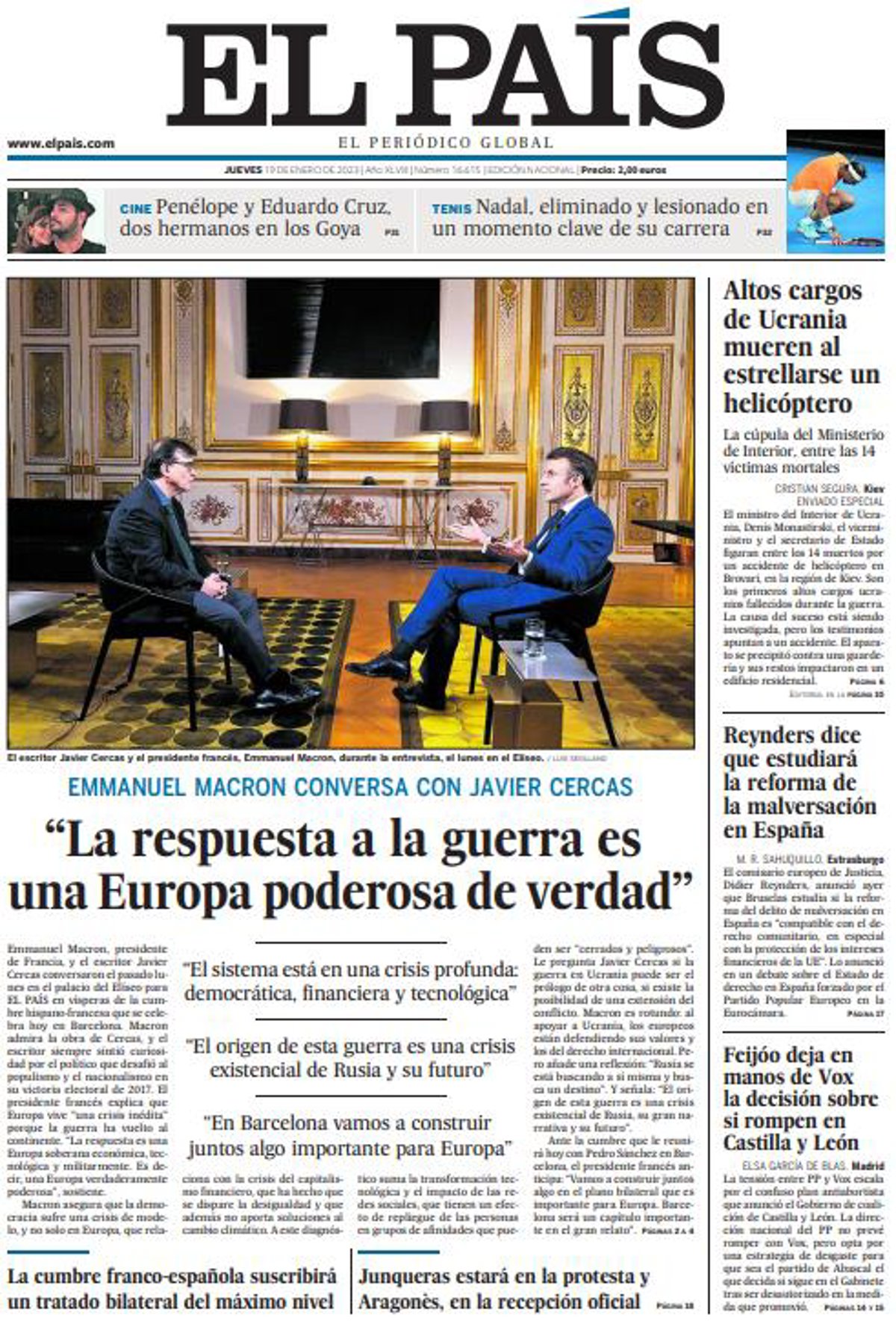 EL PAÍS: """La respuesta a la guerra es una Europa poderosa de verdad""; "Altos cargos de Ucrania mueren al estrellarse un helicóptero"; "Reynders dice que estudiará la reforma de la malversación en España"; "Feijóo deja en manos de Vox la decisión sobre si rompen en Castilla y León".