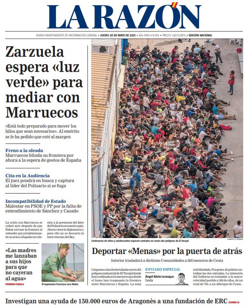 LA RAZÓN: "Zarzuela espera "luz verde" para mediar con Marruecos"; "Deportar "Menas" por la puerta de atrás"; ""Las madres me lanzaban a sus hijos para que no cayeran al agua""; "Investigan una ayuda de 150.000 euros de Aragonès a una fundación de ERC".