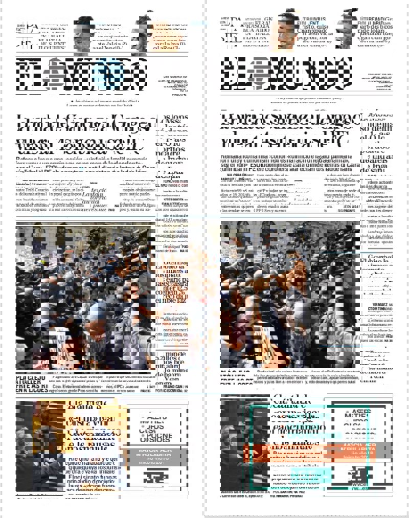 EL MUNDO: "La burla de Sánchez al Congreso vulnera 14 sentencias del TC"; "Los Mossos sólo detenían el 1-0 a los portadores de banderas de España"; "El Gobierno baja los impuestos a las eléctricas para contener un 2,5% el recibo de la luz"; "5,2 millones de niños al borde de la hambruna en Yemen".