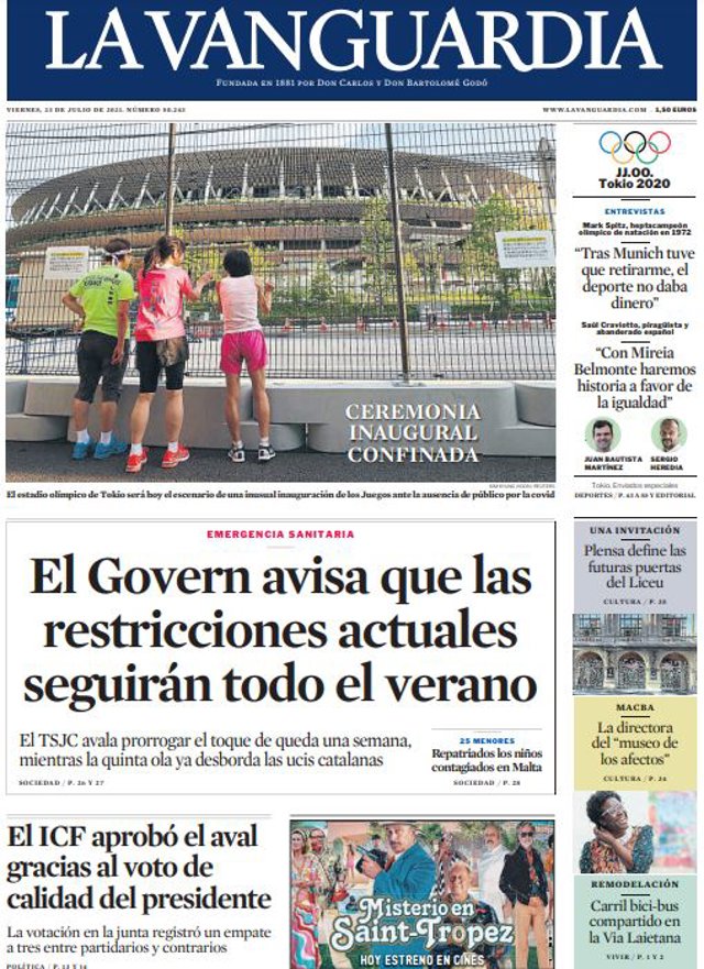 LA VANGUARDIA: "El Govern avisa que las restricciones actuales seguirán todo el verano"; "El ICF aprobó el aval gracias al voto de calidad del presidente".