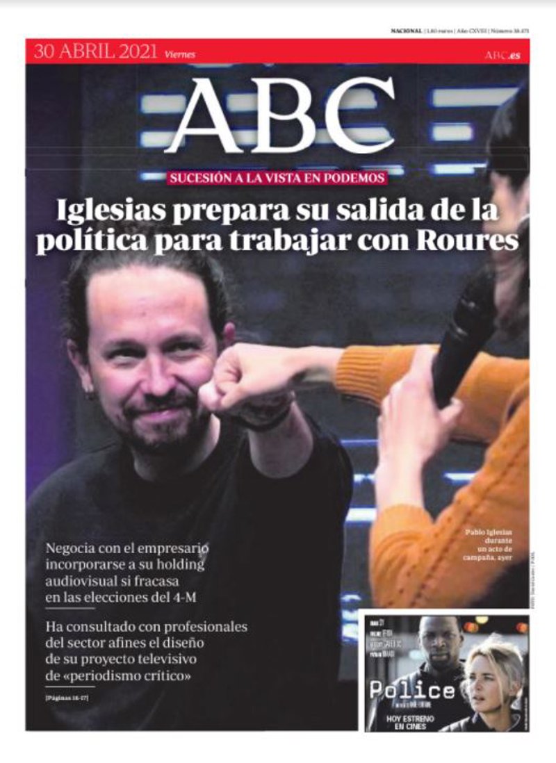 ABC: "Iglesias prepara su salida de la política para trabajar con Roures".