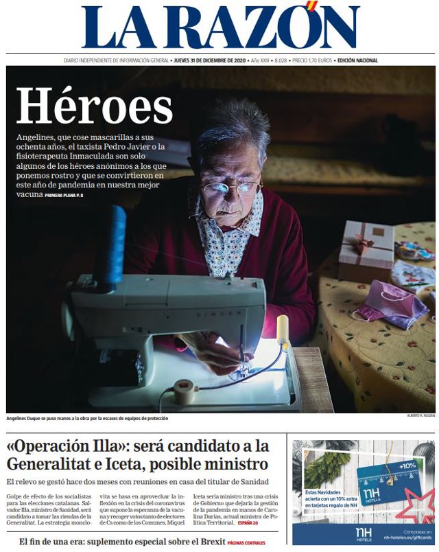 LA RAZÓN: "Héroes"; ""Operación Illa": será candidato a la Generalitat e Iceta, posible ministro"; "El fin de una era: suplemento especial sobre el Brexit".