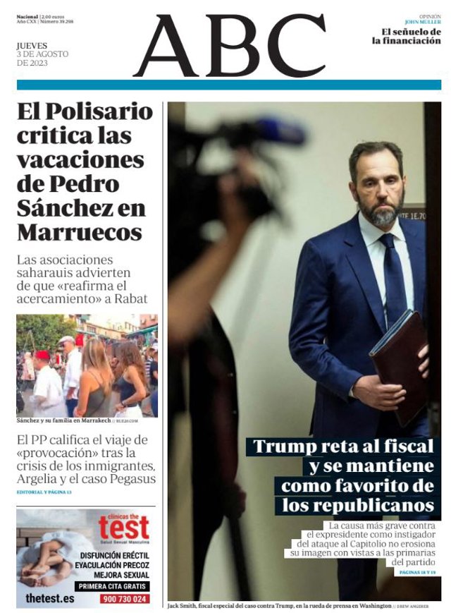 Marruecos"; "Trump reta al fiscal y se mantiene como favorito de los republicanos".